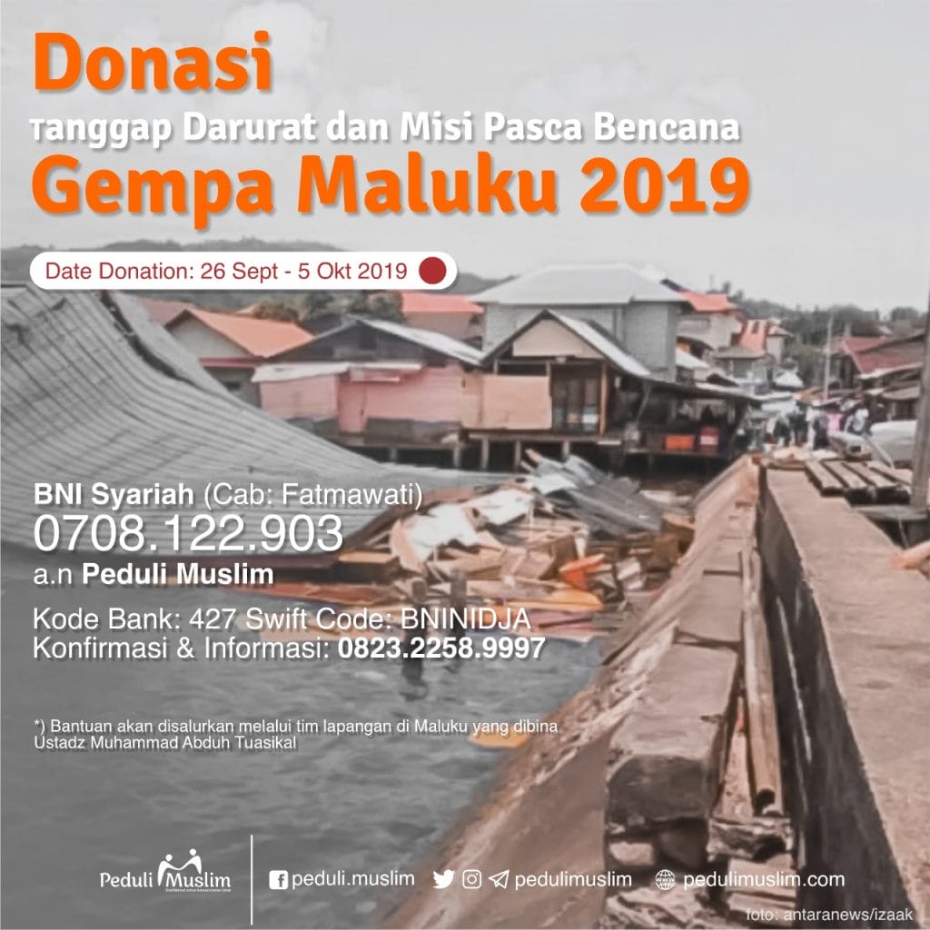 Semoga Allah ta’ala memberikan keikhlasan bagi kita semua yang berpartisipasi dalam program bantuan bagi saudara-saudara kita korban gempa Maluku. Dan semoga Allah memberikan kesabaran dan ganti yang lebih baik, kepada para korban bencana alam ini.