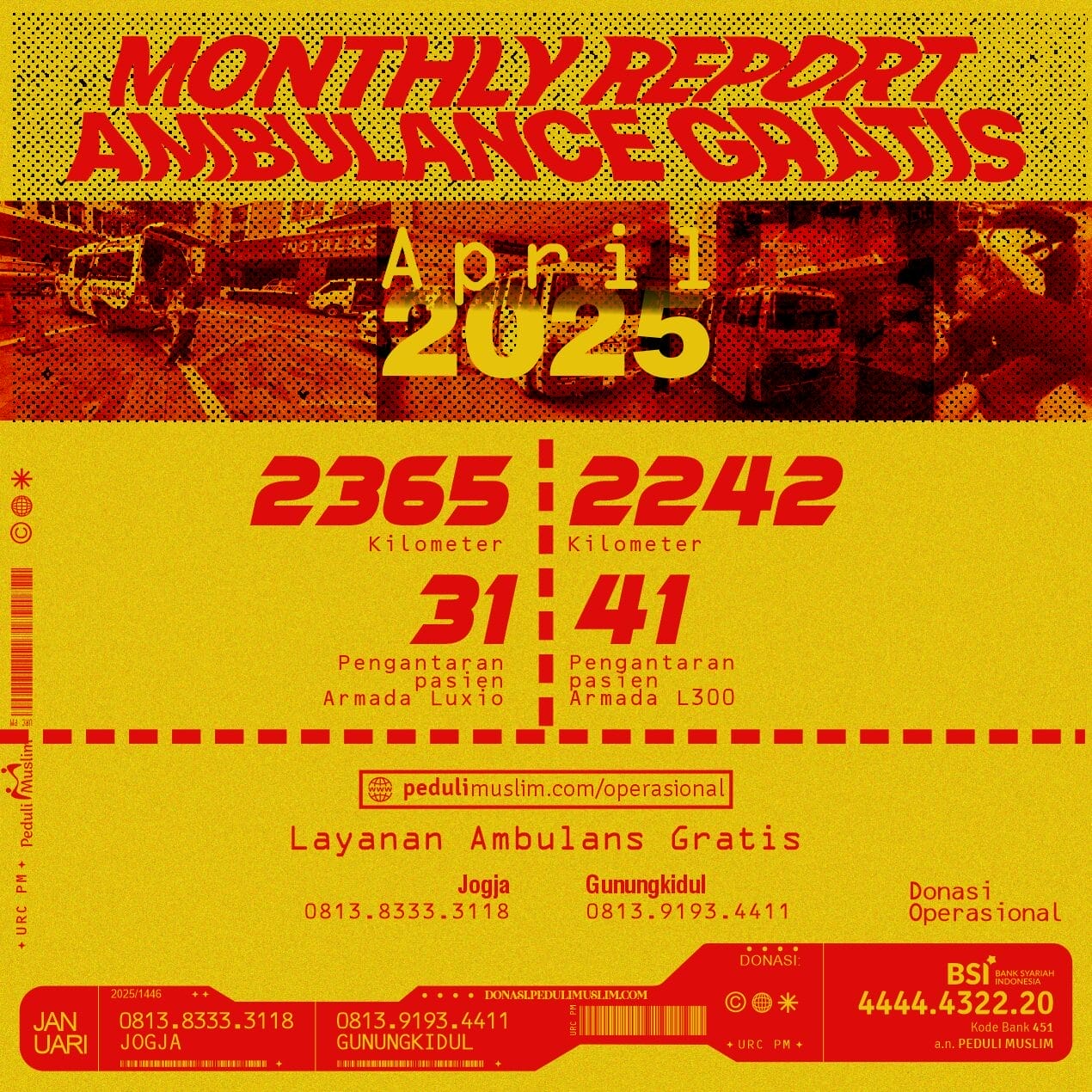 Berikut laporan penyaluran bantuan dari zakat maal, dhuafa & yatim, janda & muslimah, dan layanan ambulans gratis pada bulan April 2025.