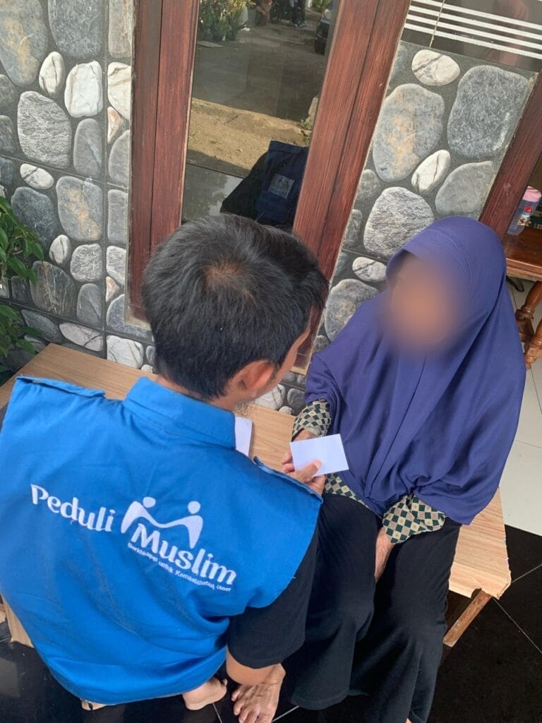 Bpk M (-) dhuafa yang saat ini qodarulloh sedang sakit strook. Kondisinya sangat memprihatinkan, bantuan ini berbarengan dengan program bedah rumah yang diselenggarakan oleh Muslim Kediri Peduli. Lokasi: Joho, Kediri.
