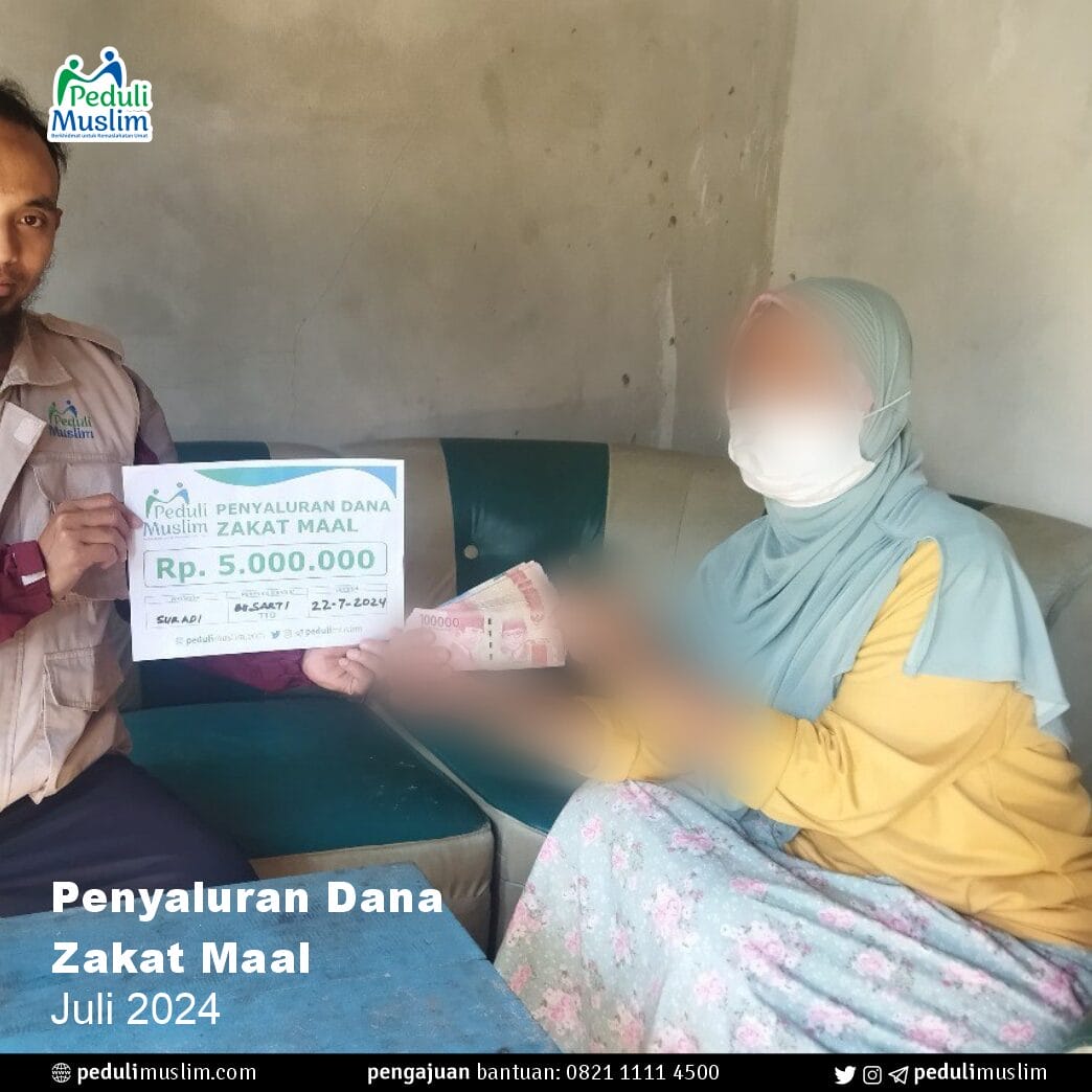 Penerima zakat adalah seorang laki-laki kepala keluarga yang didiagnosa tumor paru-paru. Pekerjaan sehari-hari sebagai penjual makanan angkringan. Istri beliau sudah meninggal, memiliki dua orang anak yang masih sekolah. Beberapa hari setelah menerima bantuan dari Peduli Muslim, beliau wafat. Dokumentasi diwakilkan oleh kakak beliau. Lokasi: Mantrijeron, Yogyakarta.