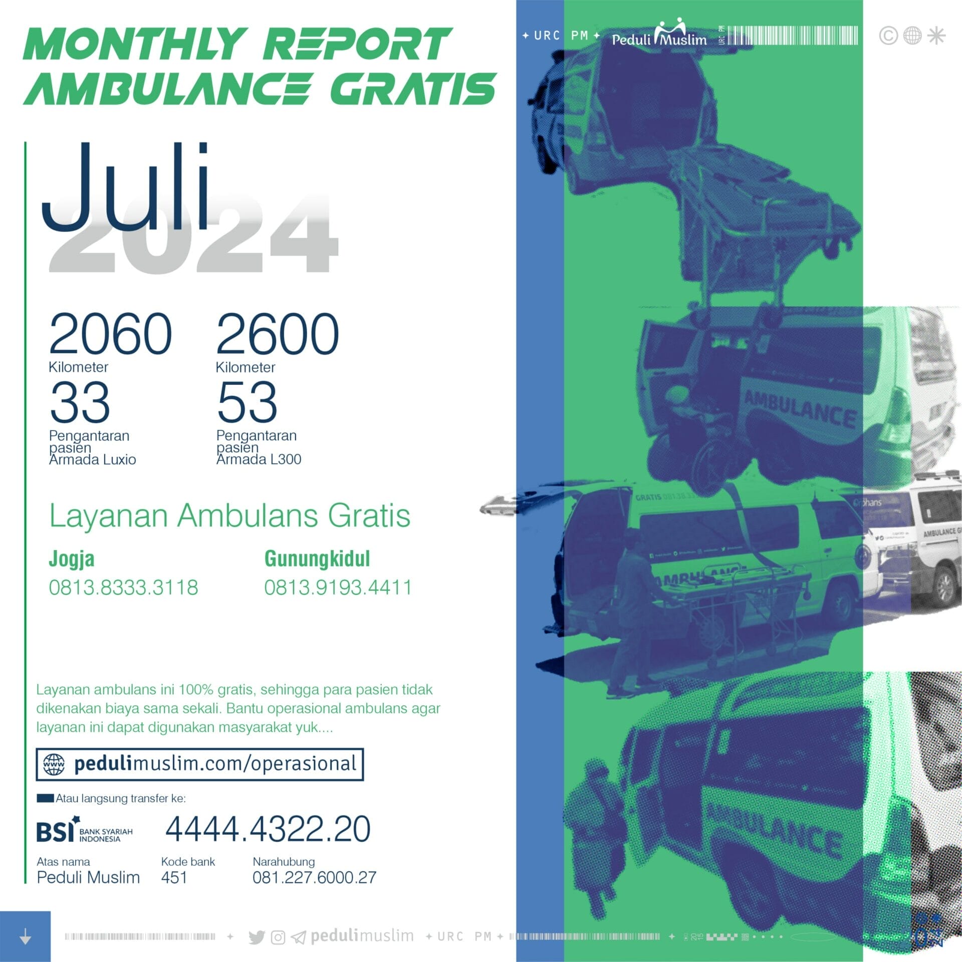 Sedangkan untuk jumlah pengantaran pasien Ambulance Wil Ops Gunungkidul ialah 53 trip/perjalanan, dengan jarak tempuh mencapai 2600 Kilometer.