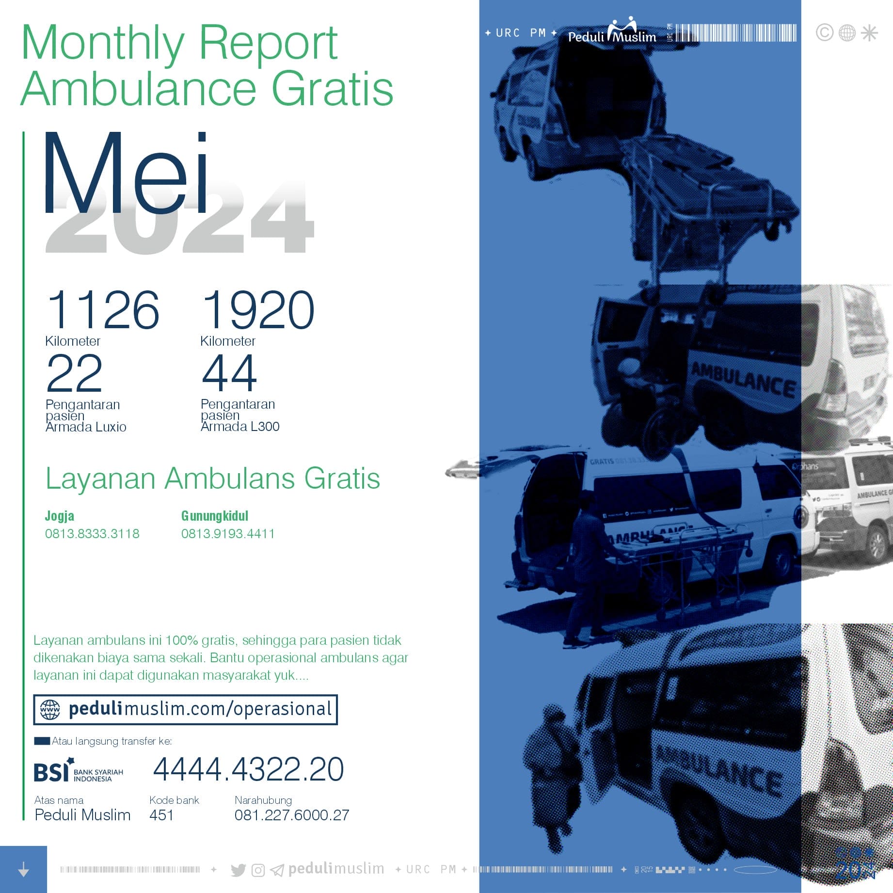 Sedangkan untuk jumlah pengantaran pasien Ambulance Wil Ops Gunungkidul ialah 44 trip/perjalanan, dengan jarak tempuh mencapai 1920 Kilometer.