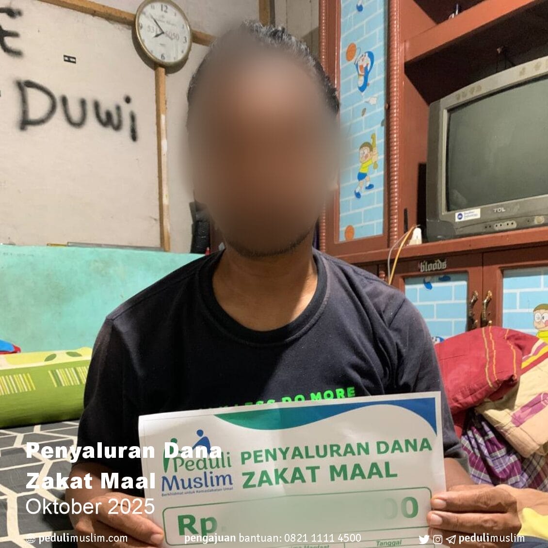 Bpk MK (41) Beliau kepala rumah tangga dengan dua orang anak dan satu orang istri. Bekerja sebagai karyawan pengrajin. Putri pertama beliau mengalami sakit berkaitan dengan sel darah merah yang tidak stabil. Qadarullah beberapa waktu yang lalu sepulang dari kontrol rutin, beliau sekeluarga mengalami kecelakaan, dan putri beliau yang pertama harus dirawat. Biaya perawatan tidak dibiayai oleh BPJS maupun Jasa Raharja, sehingga beliau harus berhutang untuk membayarnya. Sempat terbesit, beliau hendak meminjam di bank konvensional, alhamdulillah bisa dicegah agar tidak terjerumus ke ribawi. Lokasi: Pathuk, Kab. Gunungkidul.
