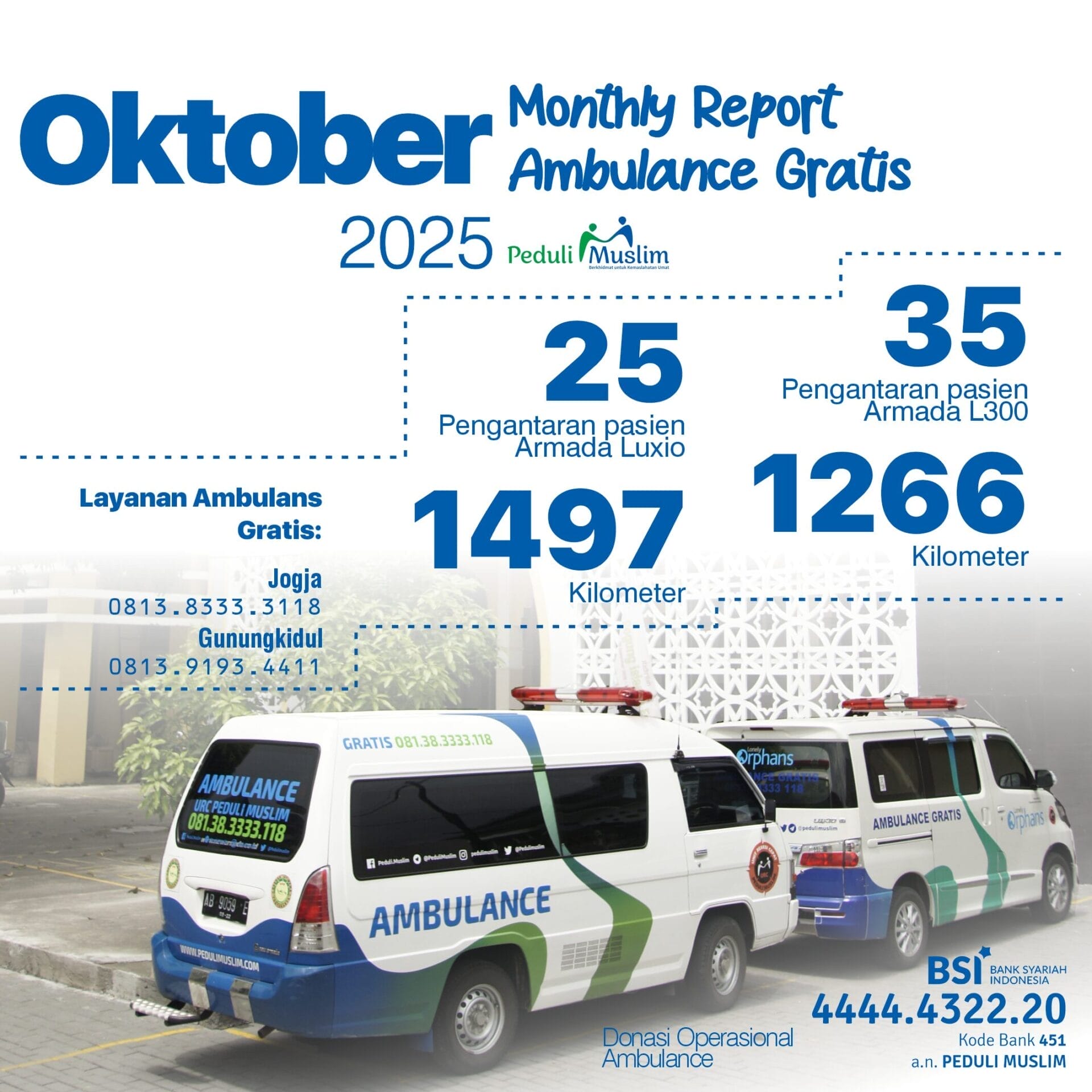 Berikut laporan penyaluran bantuan dari zakat maal, dhuafa & yatim, janda & muslimah, dan layanan ambulans gratis pada bulan Oktober 2025.