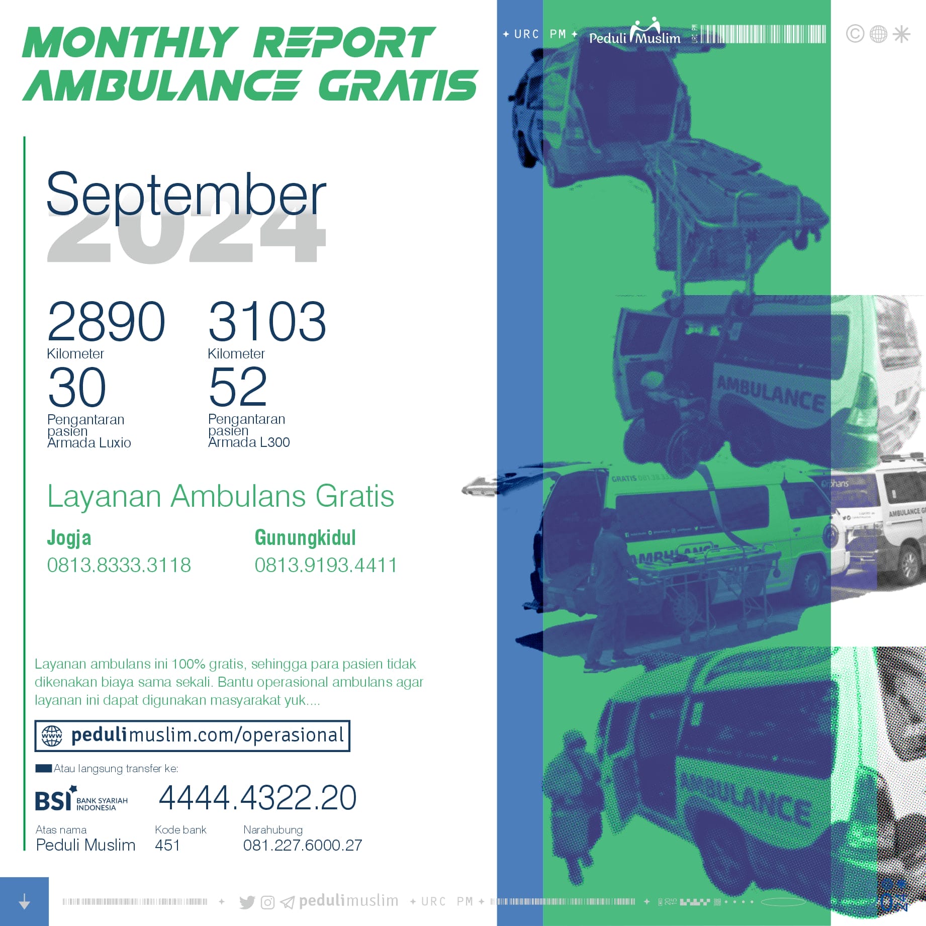 Jumlah pengantaran pasien Ambulance Wil Ops Jogja ialah 30 trip/perjalanan, dengan jarak tempuh mencapai 2890 Kilometer.