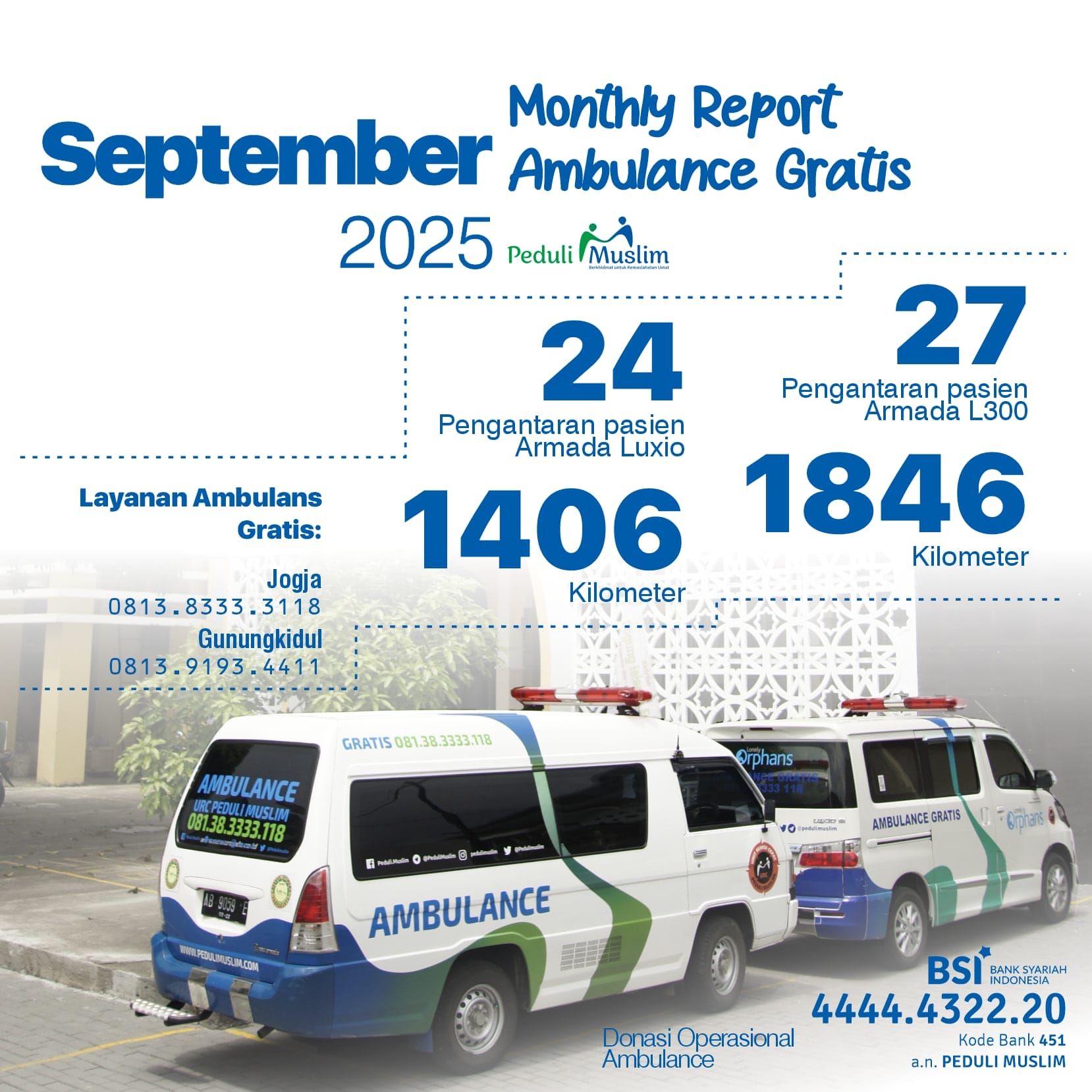 Berikut laporan penyaluran bantuan dari zakat maal, dhuafa & yatim, janda & muslimah, dan layanan ambulans gratis pada bulan September 2025.