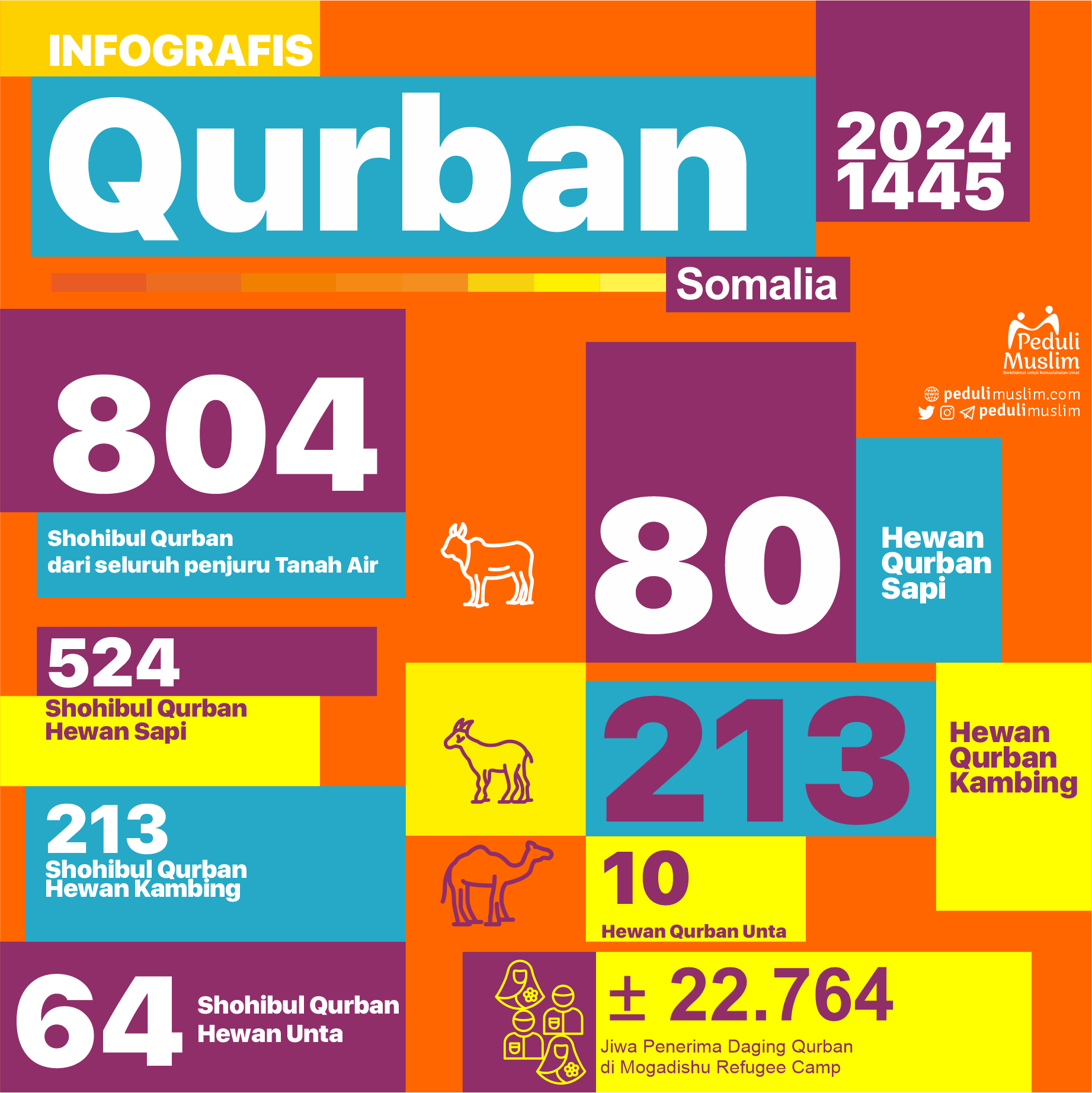 Tahun 2024 Qurban di Somalia masih berjalan. dengan diikuti oleh 804 shohibul qurban dari seluruh Indonesia, dengan rincian 524 orang shohibul qurban hewan sapi, 213 orang shohibul qurban hewan kambing, dan 64 orang shohibul qurban hewan unta. Berikut daftar shohibul qurban: