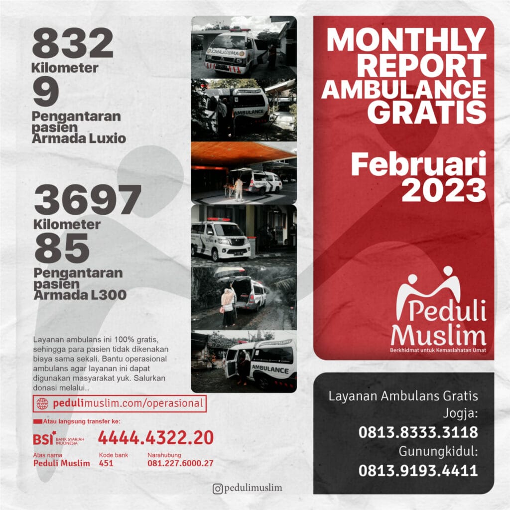 Jumlah pengantaran pasien Ambulance Wil Ops Jogja ialah 9 trip/perjalanan, dengan jarak tempuh mencapai 832 Kilometer. 2 tugas backup medis, mengangkut 1 jenazah. Sedangkan untuk jumlah pengantaran pasien Ambulance Wil Ops Gunungkidul ialah 85 trip/perjalanan, dengan jarak tempuh mencapai 3697 Kilometer.