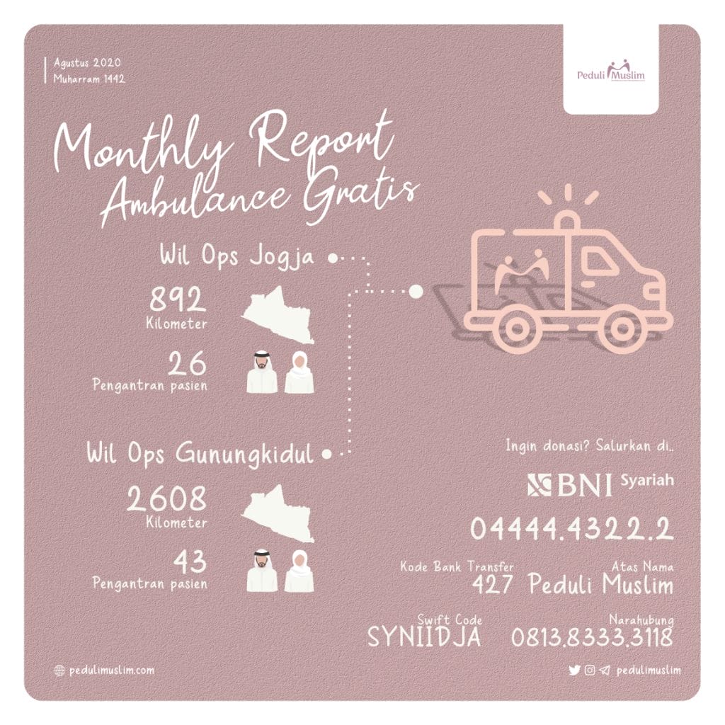 Berikut kami terbitkan infografis program harian layanan ambulance gratis Peduli Muslim. Terbagi menjadi dua Wil Ops (Wilayah Operasi)