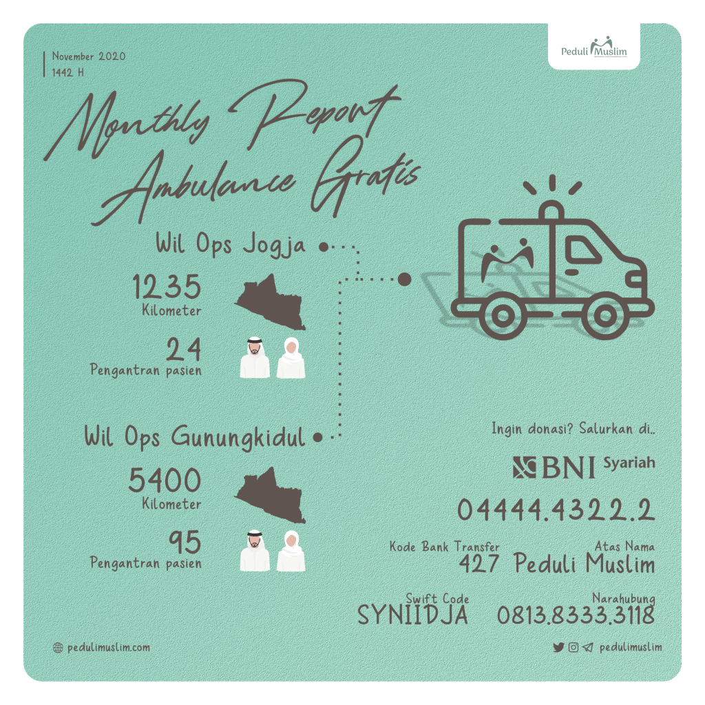Berikut kami terbitkan infografis program harian layanan ambulance gratis Peduli Muslim. Terbagi menjadi dua Wil Ops (Wilayah Operasi)