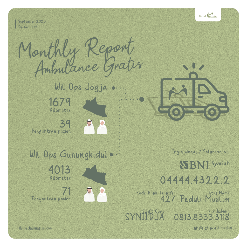 Berikut kami terbitkan infografis program harian layanan ambulance gratis Peduli Muslim. Terbagi menjadi dua Wil Ops (Wilayah Operasi)