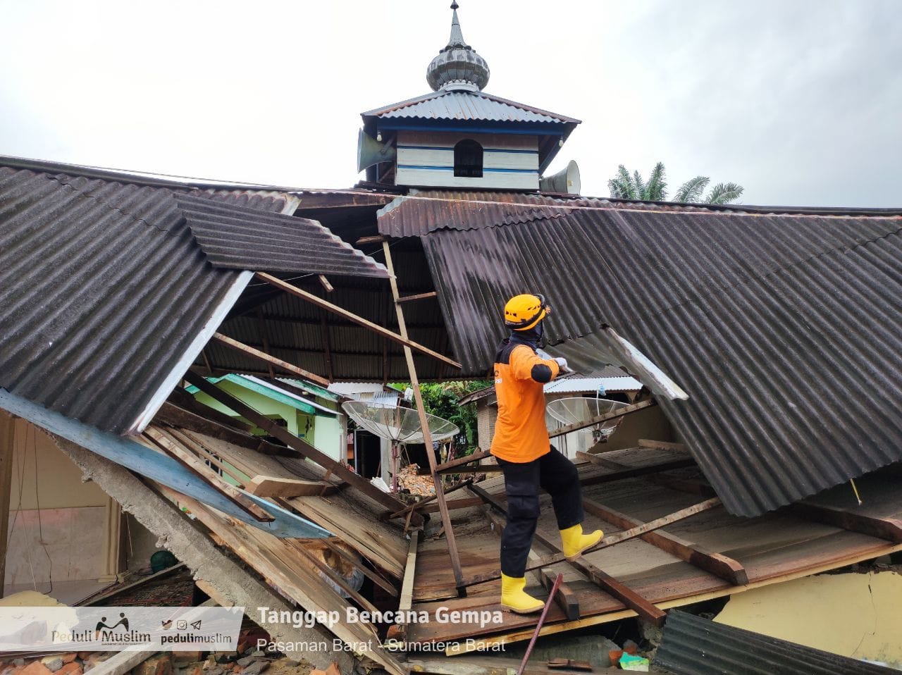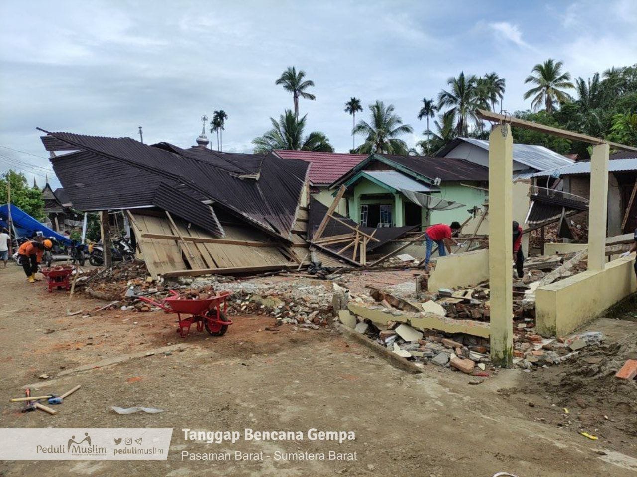 Pembersihan Puing Musholla Marhamah, Pasaman Barat