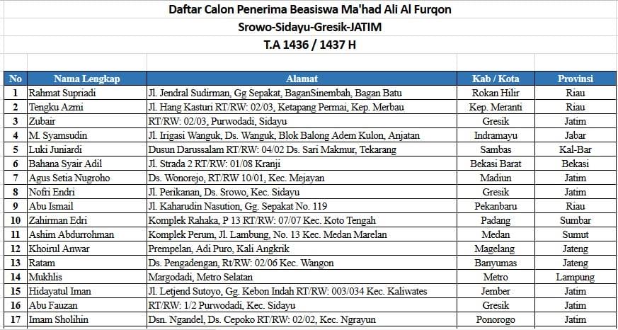 Mengenai daftar para santri calon penerima beasiswa tersebut, dapat dilihat di link berikut: http://1drv.ms/1O3IsfR