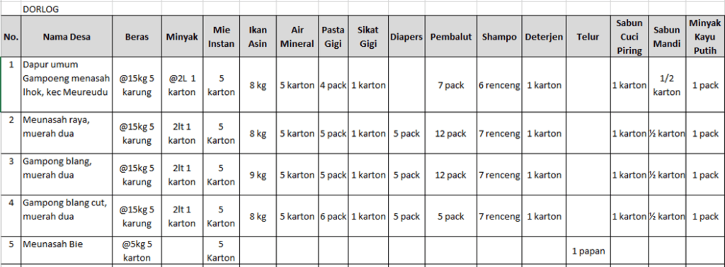 - Belanja kebutuhan logistik relawan dan penyintas.